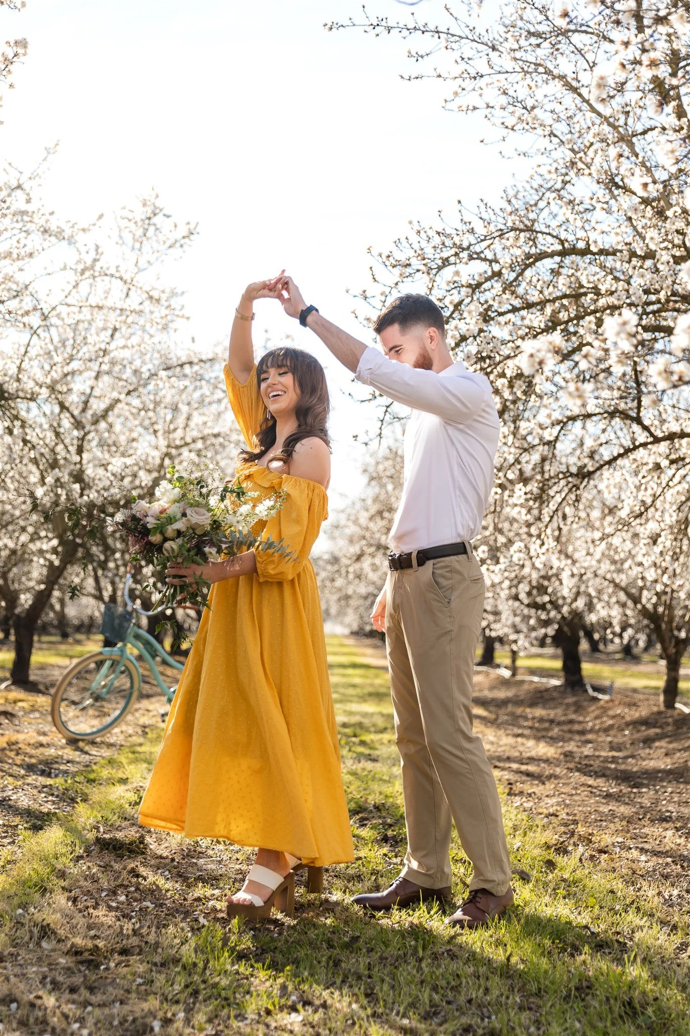 The short bloom window makes planning essential, but when timed right, it offers a delicate, floral backdrop for engagement photos.